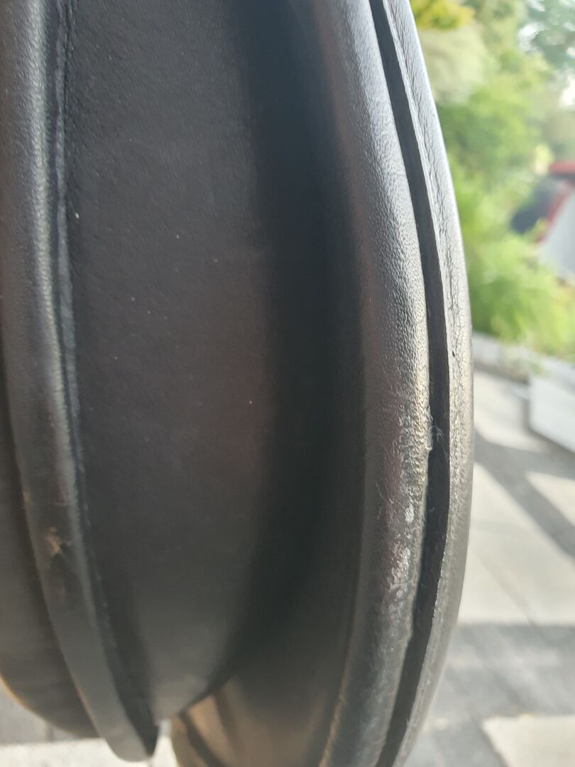 Niestety skóra jest lekko wyszczerbiona w przedniej części i na tylnym łęku. Celowo nie wyczyściłem go przed zrobieniem zdjęć, aby było bardziej widoczne. Akcesoria nie są wliczone w cenę.