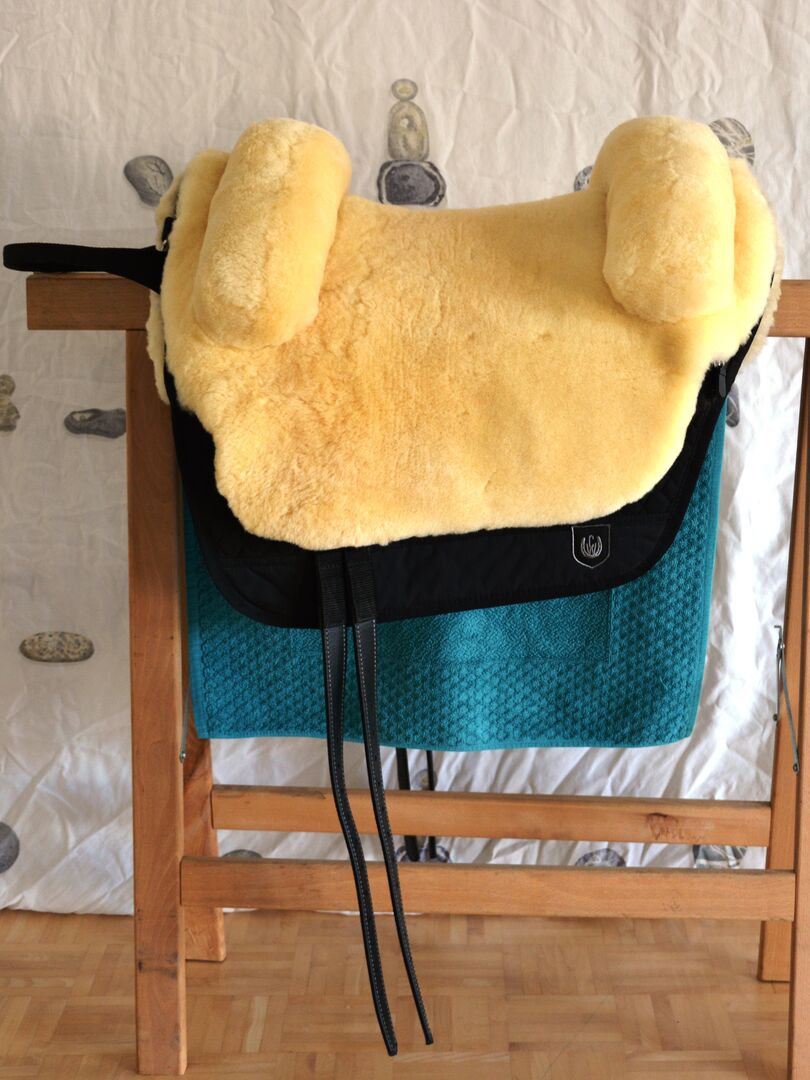 Siedzisko jest w całości wykonane z jagnięcej skóry o wysokości wełny ok. 30 mm. Spód wykonany jest ze skóry jagnięcej w części tylnej. Zintegrowane galery z przodu i z tyłu zapewniają bezpieczne trzymanie. Kompozytowe wkładki z pianki zapewniają komfort siedzenia dla jeźdźca i przyjemne uczucie dla konia, a także są wbudowane.