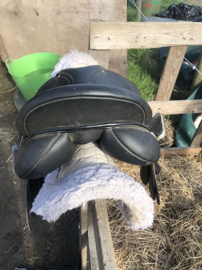 17.5 inch gp Optimus changeable gullet saddle currently doesn’t have a gullet in. In good condition few scuff marks on the front nothing major one of the girth straps does a have tear but I’ve not had any problems while using it. Cheap to replace £250 Ono would prefer pick up but would post