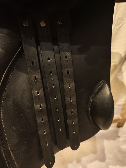 Skóra, wyściółka i paski do popręgu są elastyczne, a łęk siodła jest nienaruszony. Siodło jest w naprawdę dobrym stanie ze zwykłymi oznakami zużycia.