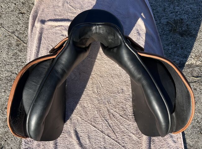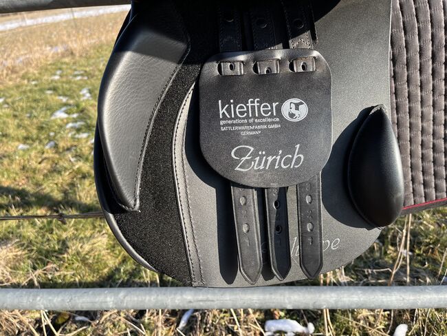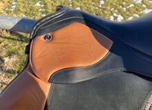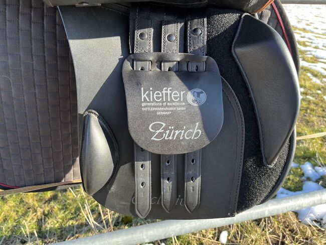 Siodełko Kieffer VS jak nowe - Siodło Kieffer model Zurich Siodło eventowe Jak nowe, tylko niewielkie ślady zużycia Rozmiar siedziska 1 około 17 cali z rolkami kolanowymi i łydkowymi, pod klapą siodła, zdejmowane Krótkie paski do popręgu, wymagany długi popręg Było na koniu ok. 6 razy Kolor czarny/tytoniowy Płyta wpustowa regulowana na zimno