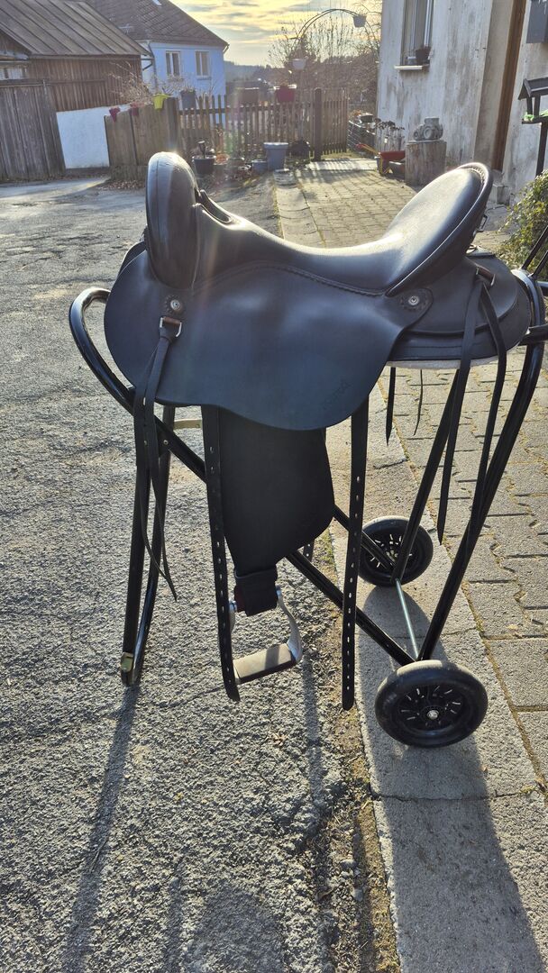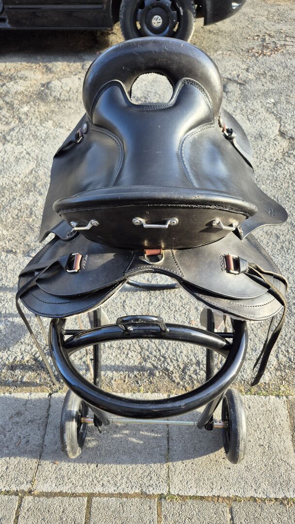 Siodełko podróżne Nomad - Na sprzedaż jest używane, ale dobrze zachowane siodło Nomad z aluminiowymi strzemionami bez rogu