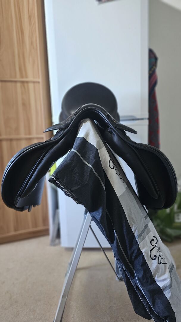 Siodło jest odpowiednie dla bardzo szerokich koni, było na mojej mieszance Noriker-Haflinger. Do tej pory nie dokonano żadnych regulacji siodła. Ponieważ mogę go używać zbyt rzadko ze względu na zdrowie mojego konia, mam wielką nadzieję, że nowy koń i zespół ludzki będą cieszyć się siodłem przez wiele lat.