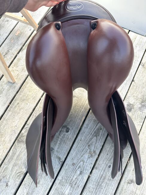 Siodełko Prestige GP2 VSS - brązowe - 17' 32KW - Sprzedaję moje bardzo wygodne siodło Prestige GP 2 z naciskiem na skoki (VSS). To siodło jest absolutnie wszechstronne i doskonale nadaje się zarówno do skoków, jak i do codziennej pracy i długich przejażdżek. Szczegóły siodła: