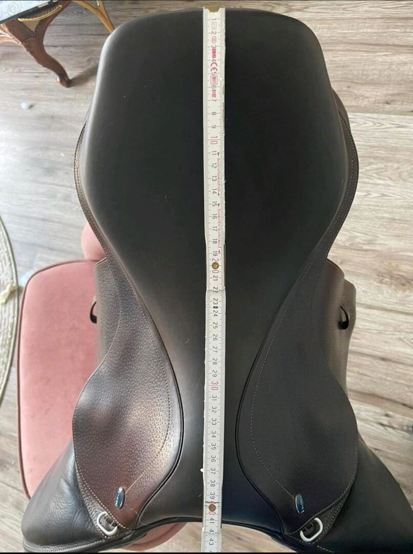 Siodło ma 17,5 cala, wymienny system łęku, obecnie M, zamontowana zielona płyta łęku. Półgłębokie siedzisko z bardzo miękką podwójną skórą, która zapewnia jeźdźcowi doskonałe wsparcie w siodle. Siodło zawsze było zadbane i utrzymywane w suchości dzięki ochraniaczowi.