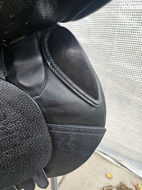 Beautiful quality and very comfortable jump saddle, handmade in Germany for 16.1 hh sportshorse. Very lightly used due to lack of soundness and now no longer needed. Cover included. Absolute bargain.