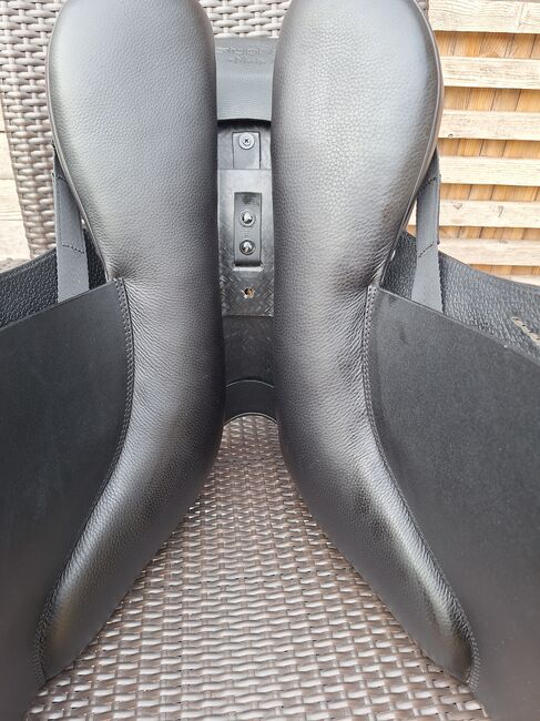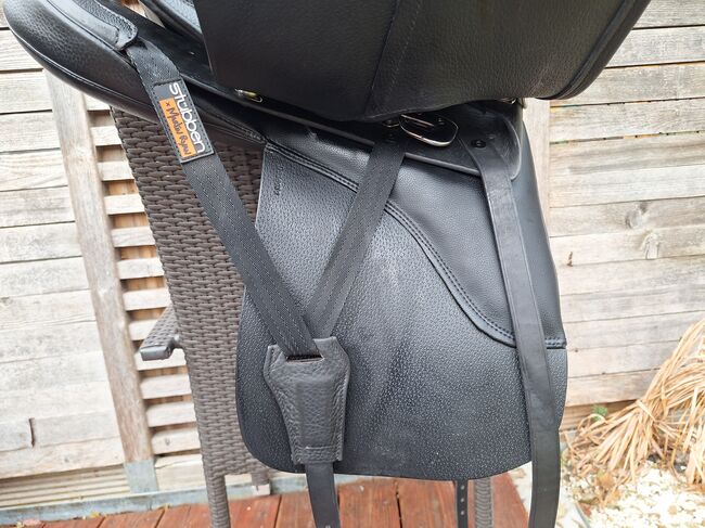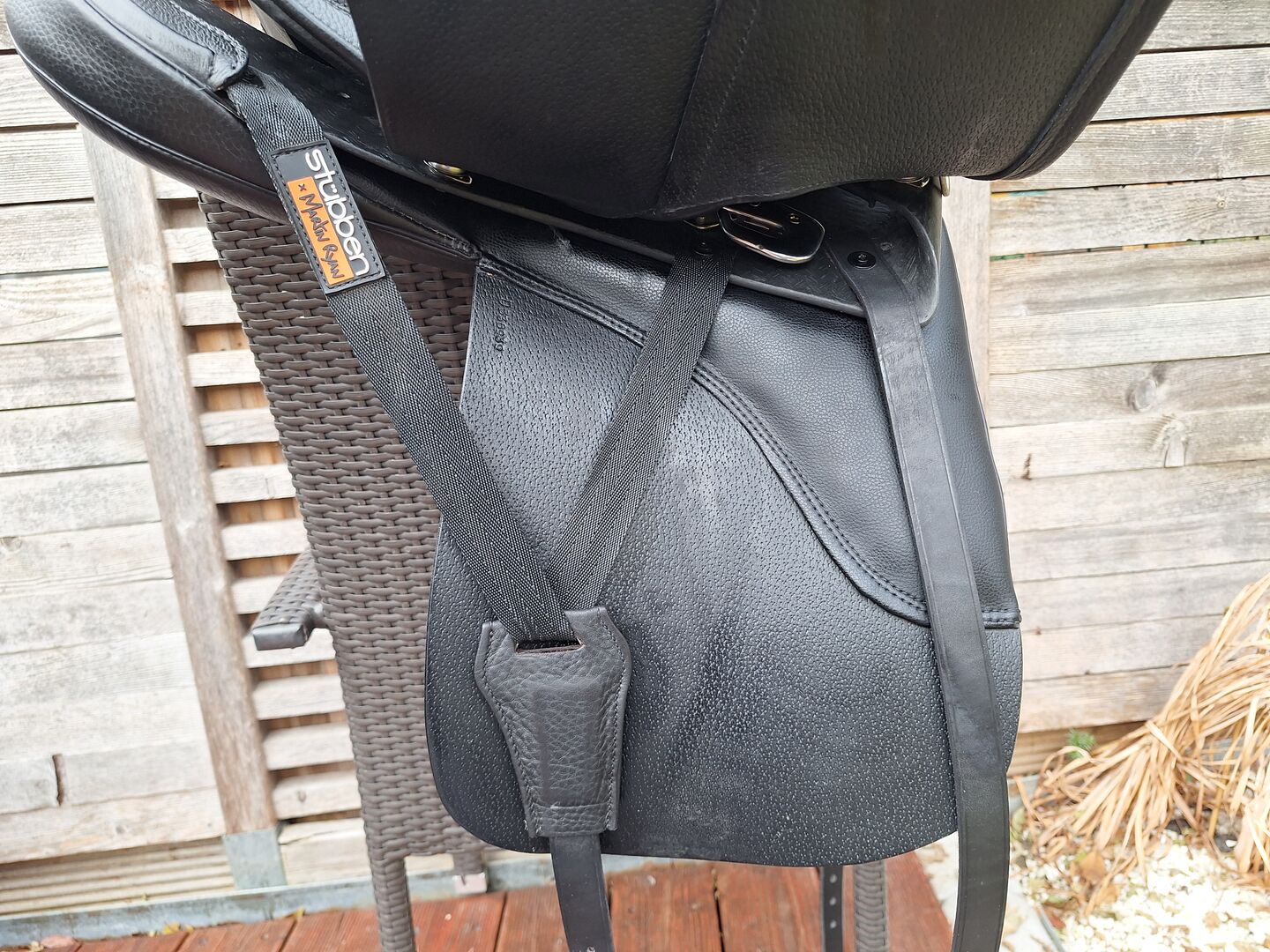 Siodło ma tylko niewielkie ślady zużycia na klapach siodła. Klapy siodła (ujeżdżeniowe, trekkingowe i skokowe) można zmienić w razie potrzeby, moje siodło jest dostarczane z klapami ujeżdżeniowymi.