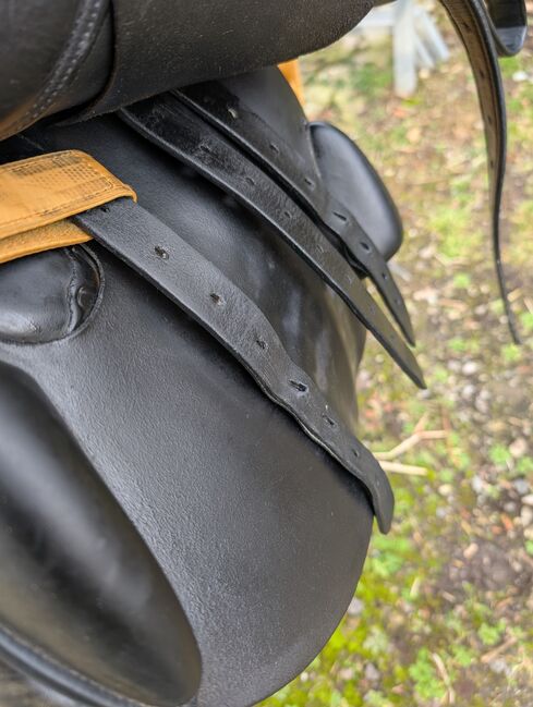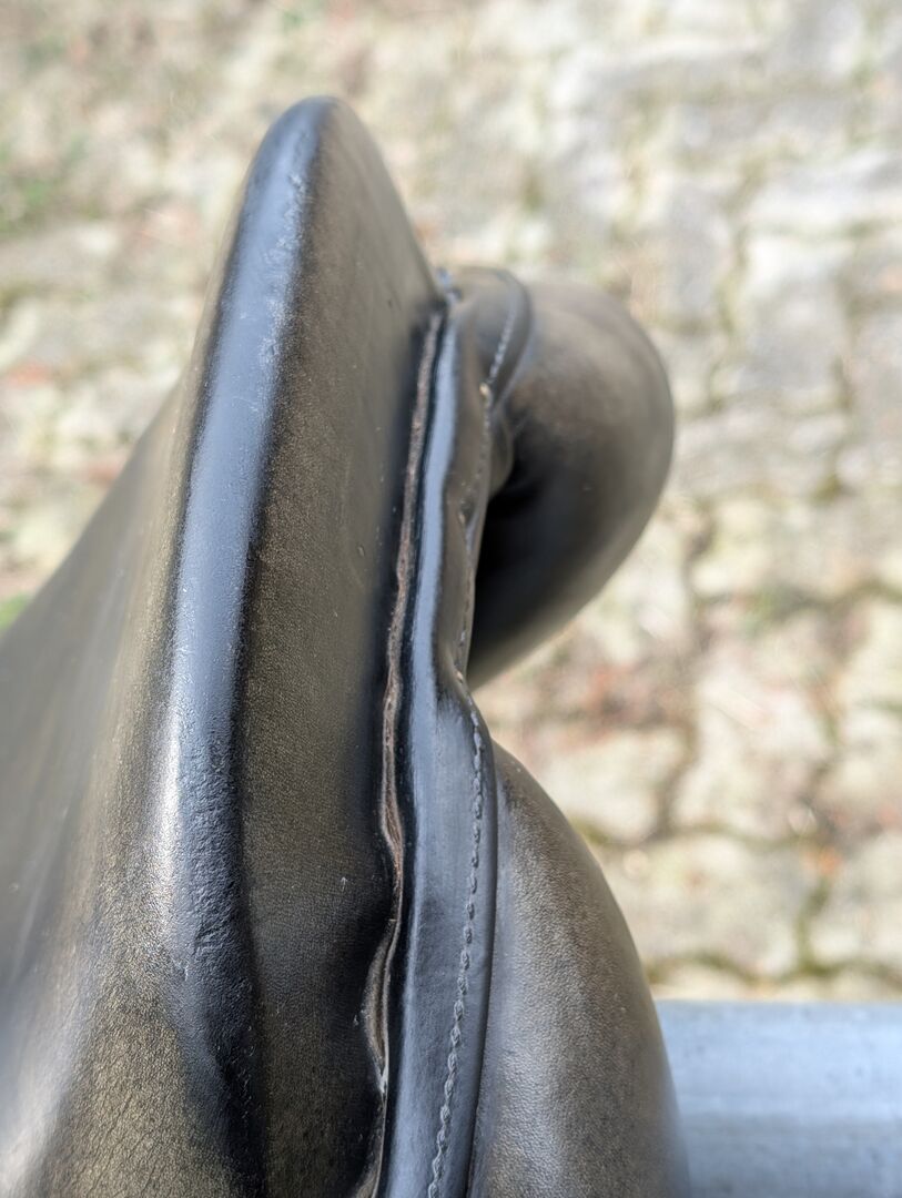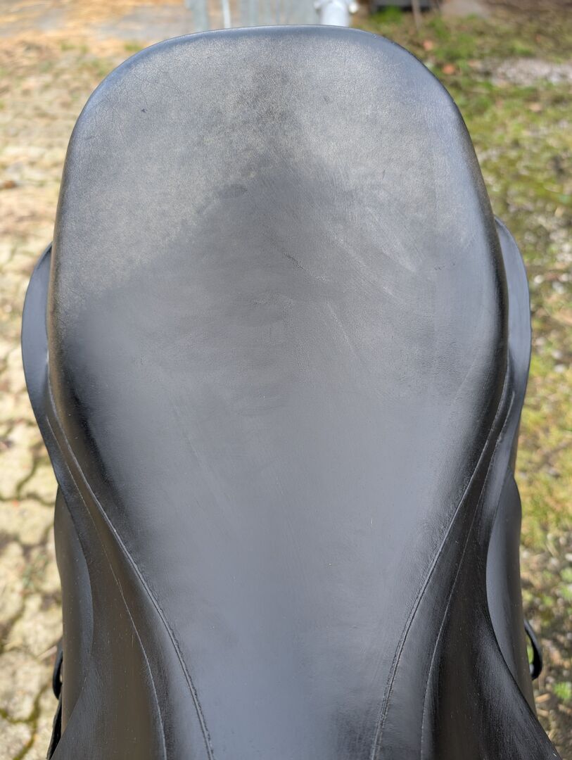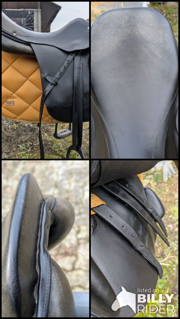 Siodełko VSS 17,5" Equinomic czarne - Na sprzedaż starsze (2009) czarne siodło skokowe od Equinomic. Część skóry odbarwiła się do zielonkawego odcienia (ponad 10 lat) i ma ślady użytkowania współmierne do wieku. Ogólnie w dobrym stanie i może być regulowany przez siodło. Pasuje na wąskiego konia z wysokim podbiciem i normalnym grzbietem. Bez strzemion, ale paski mogą być dostarczone bez dodatkowych opłat. Odbiór w 8048 Zurych lub Dietikon. Wysyłka tylko przy zakupie bezpośrednim. 750,- CHF