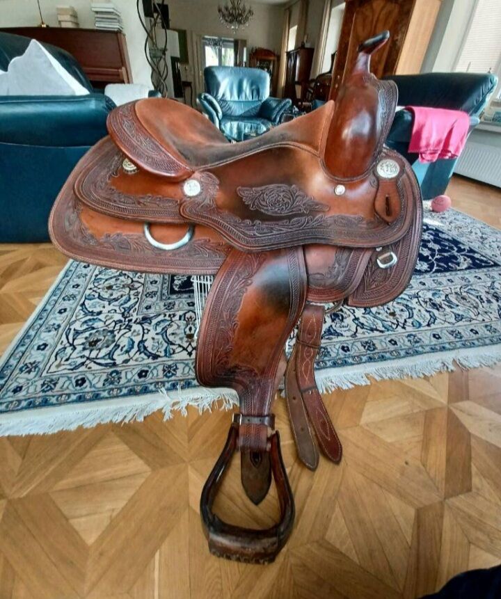 Siodełko westernowe Champion Turf - Sprzedaję moje westernowe siodło od wymarzonej marki Champion Turf, Equipment INC. Siodło jest wyposażone w drzewo Full Quarter o średnim wychyleniu, strome pręty i bardzo piękne kwiatowe oznakowanie.