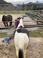 Zostało zamontowane na wąskiej mieszance Pinto Arabian o wysokości 1,65 metra.