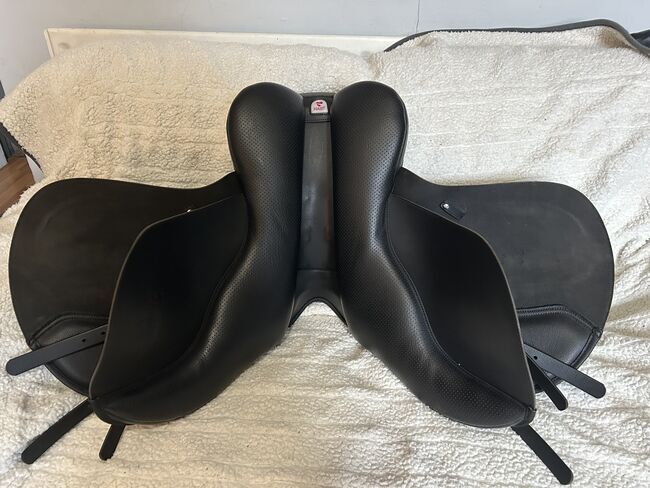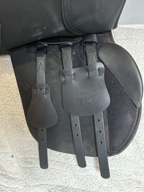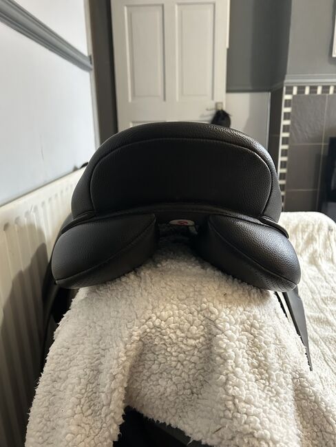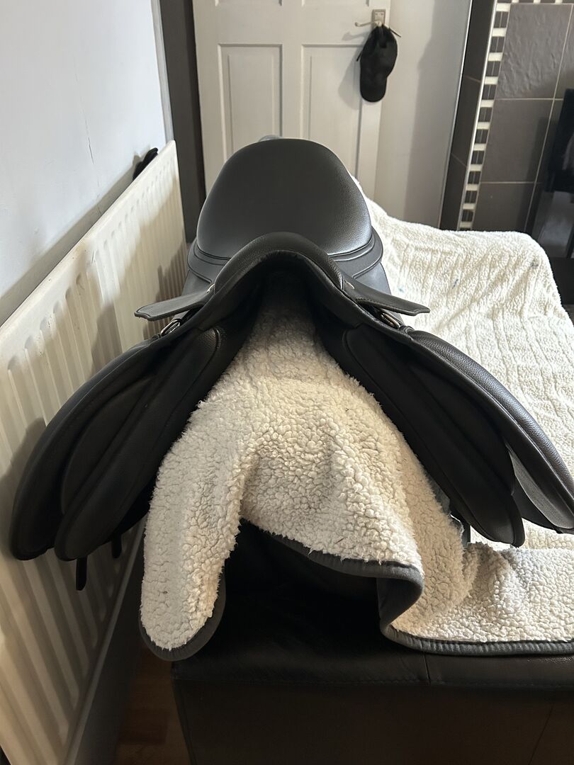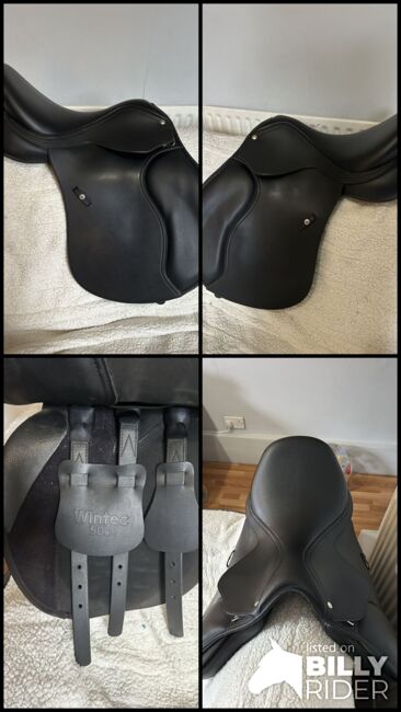 16.5 inch standard fit Wintec saddle. Black general purpose hart. Currently has the red bar fitted but comes with all the changeable bars. Only used a handful of times but unfortunately isn’t getting used due to retiring my horse. It’s in really good condition no rips ect Collection only please