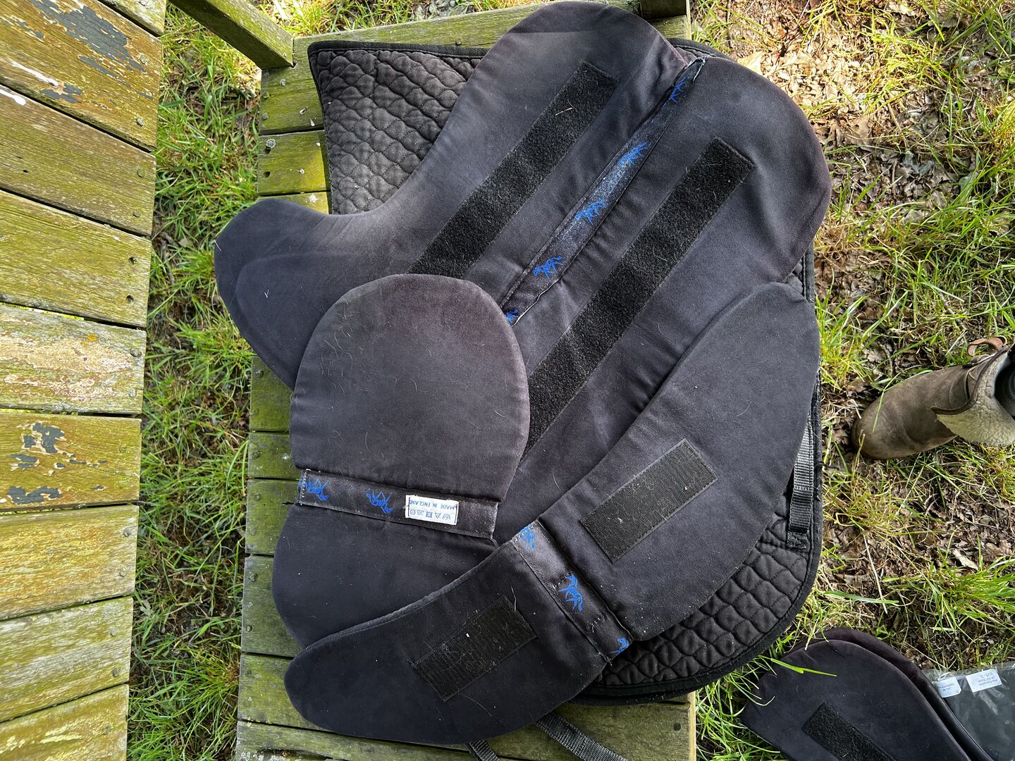 Siodło Balance Dressage Zenith - Siodło ujeżdżeniowe Zenith angielskiej firmy Balance. Szerokość 8X, długość C. Wykonane dla mnie w 2016 roku. W zestawie podkładki i derka.