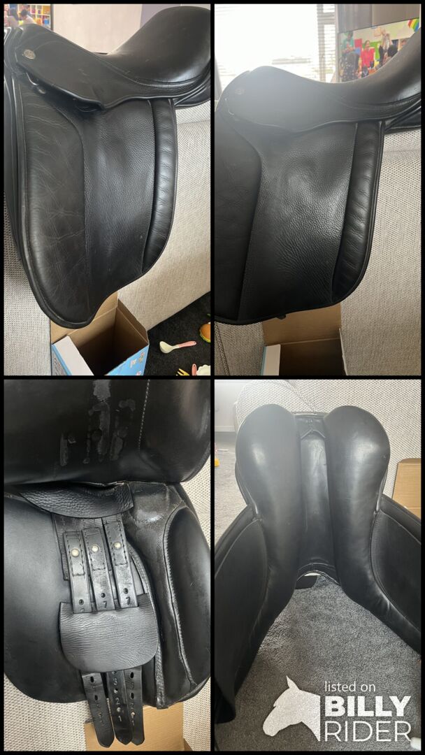 We had this saddle made to measure for our wide haflinger. Only for sale due to loss of horse. It is a cross between a gp and a dressage ( custom made) to allow for shoulder movement. Very good condition