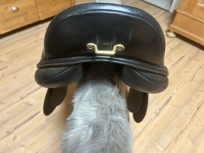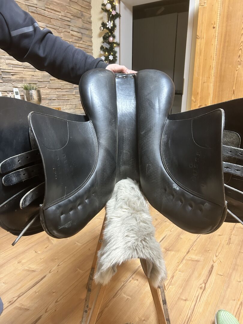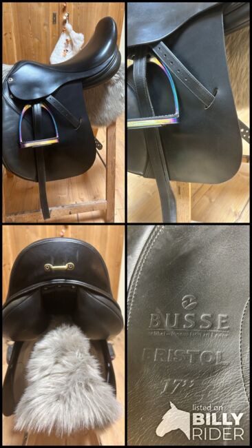 Model: Busse Bistrol Siedzisko: 17 cali Szerokość komory: MW - regulowana na zimno Wypełnienie poduszki: wełna Kolor: czarny Dopasowanie: dla krótkich, prostych grzbietów koni, z płaskim kłębiem, bardzo krótki obszar kontaktu Stan: dobry, normalne ślady użytkowania Rodzaj skóry: wytrzymała skóra bydlęca Wędzidło: średnie Siedzisko: głębokie Obwód: cztery krótkie paski do popręgu