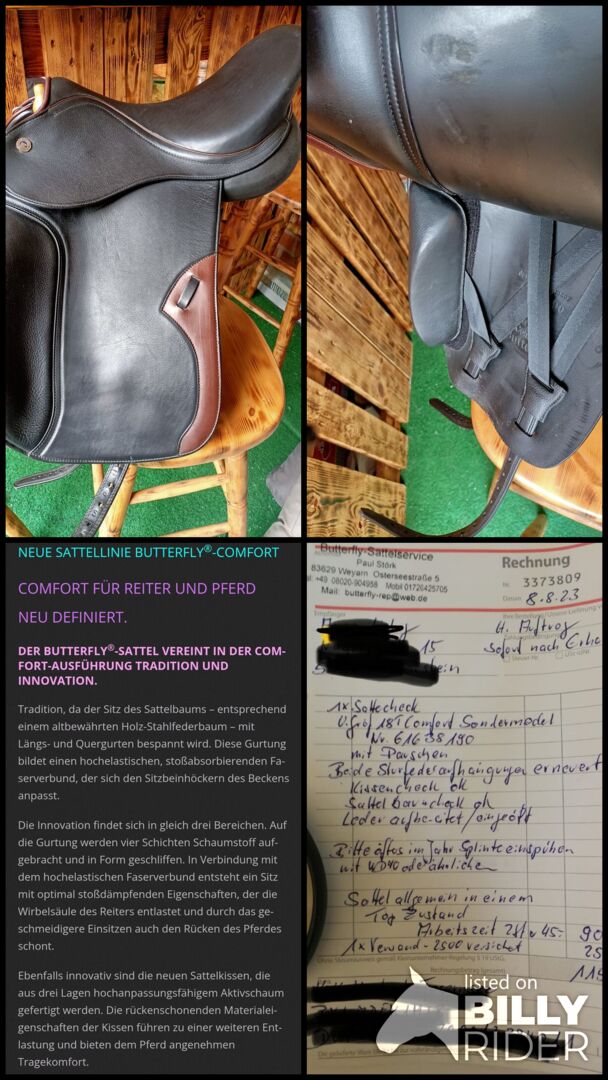 Siodło Butterfly Comfort Uta Gräf 18 T - Witam, oferuję nasze piękne siodło. Od ostatniego przeglądu w 2023 roku (patrz zdjęcie 11) siodło było na koniu dwa razy.