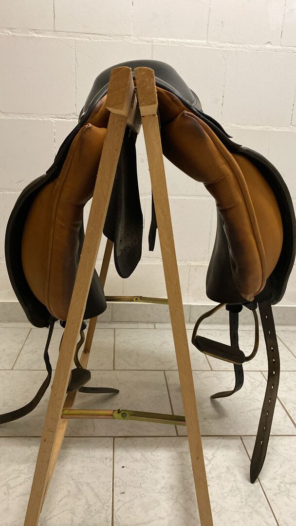 Siodło czarny koniak 1st hand 17,5 Stigur Maxhors - Moja ruda kasztanowata klacz nie nadaje się już do jazdy ze względu na swój wiek, więc z ciężkim sercem sprzedaję to dwukolorowe, super wygodne, miękkie siodło. Łęk z włókna węglowego ze stalową sprężyną, płyta wpustowa *samodzielnie* wymienna Płyta wpustowa niebieska (średnia) i dodatkowa nieużywana złota płyta wpustowa Klapa siodła Störtal-Line Nowa cena obecnie 4250€ Sprzedaż prywatna bez gwarancji i rękojmi Odbiór tylko w pobliżu BAB Hannover-Herrenhausen