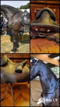 Cechy: Drzewo siodełka Ultra-Flex Srebrne okucia. Białe szwy. Regulowana komora. Klucz w zestawie. System bezpieczeństwa dla strzemion. Dopasowanie do siodła. W zestawie popręg i strzemiona (czarne). (Patrz zdjęcia)