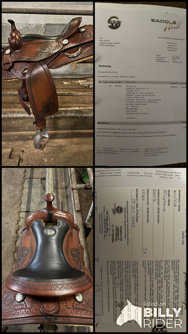 Siodło Deuber Western DP Lightning - Sprzedaję moje bardzo wygodne westernowe siodło Deuber. Niestety nie pasuje już na mojego QH. Siodło zawsze było przechowywane w szafce z pokrowcem i jest jak nowe. Siedzisko jest podwójnie wyściełane. Dostępny certyfikat gwarancyjny. Wysyłka jest możliwa!