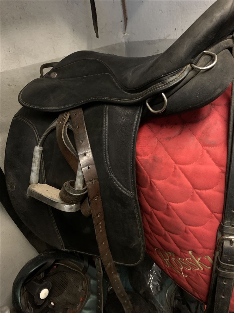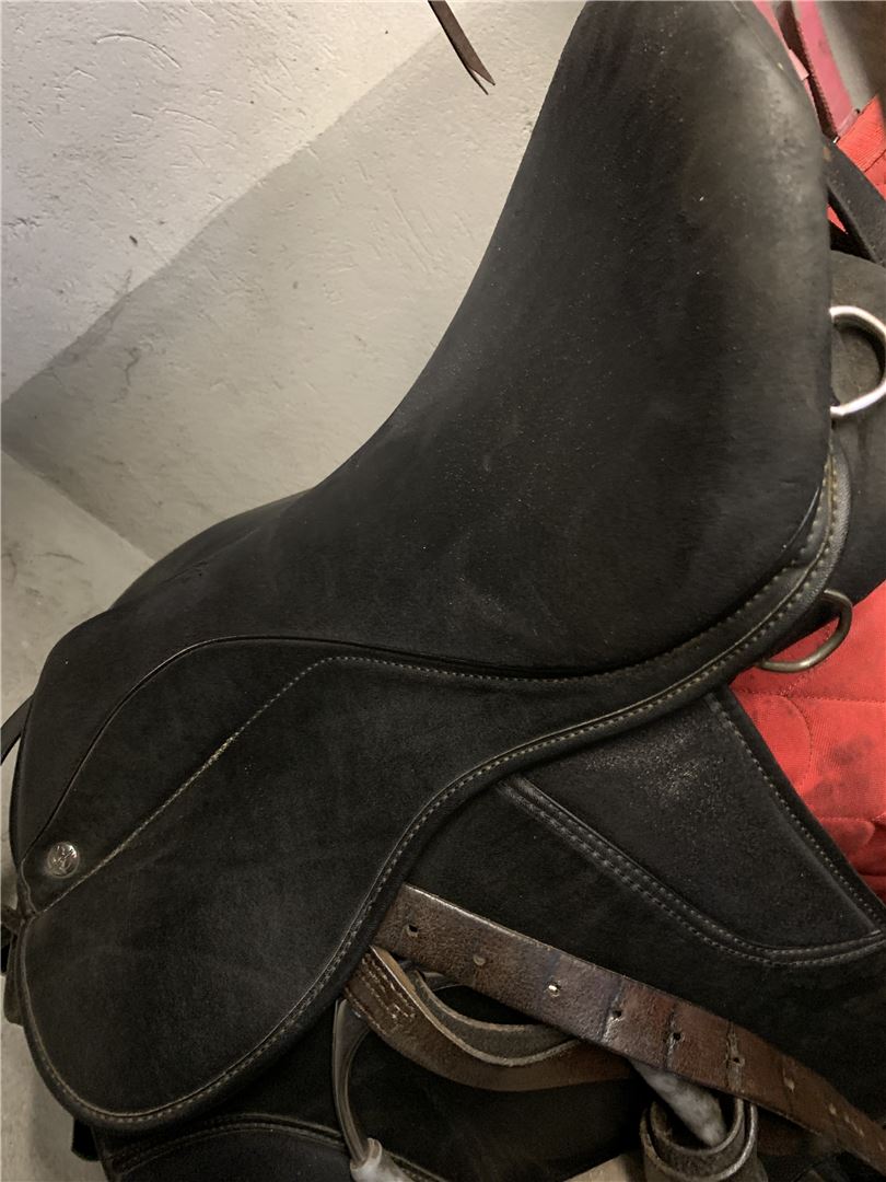 Siodło dla konia z uzdą - Szerokość komory 17,5 cala , normalne ślady użytkowania . Ładny, lekki i całkowicie nienaruszony jest sprzedawany bez akcesoriów.