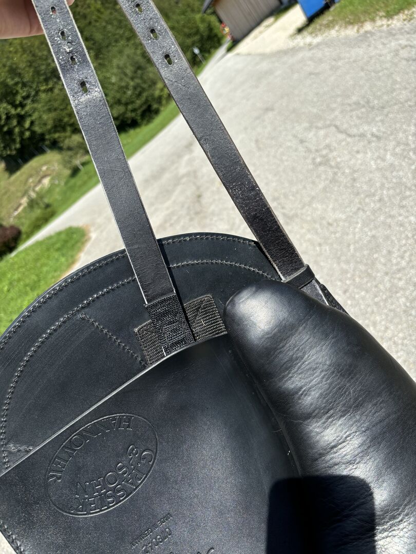 Paski do popręgu zostały wszyte bardziej do przodu, aby zapobiec zsuwaniu się siodła do przodu na krótkich kucykach.