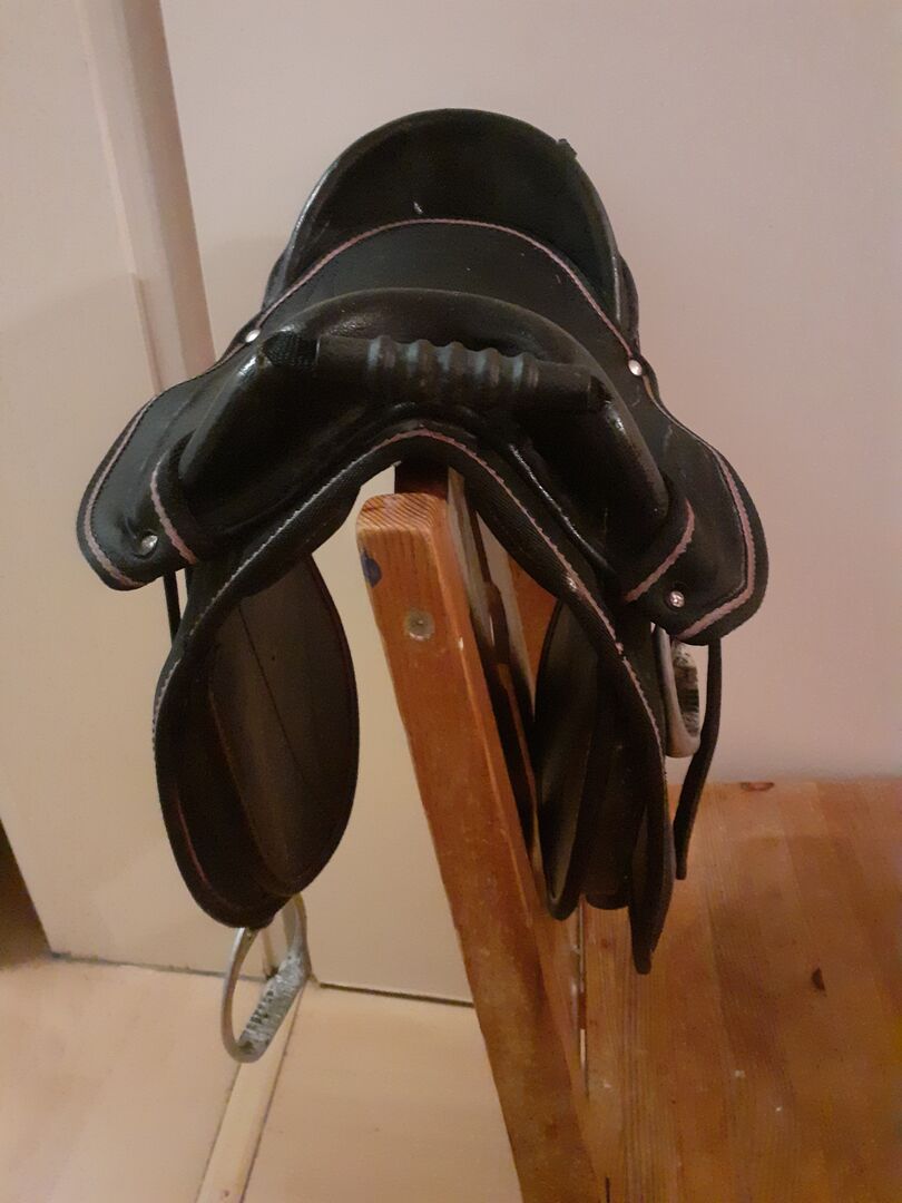 Siodło dla kucyka ze strzemionami - Siodło dla kucyka, rozmiar Shetty Jedno rozdarcie, patrz zdjęcie Rozmiar dla dzieci Rzadko używane, ponieważ nie jest dostosowane do kucyka Strzemiona, popręg w komplecie