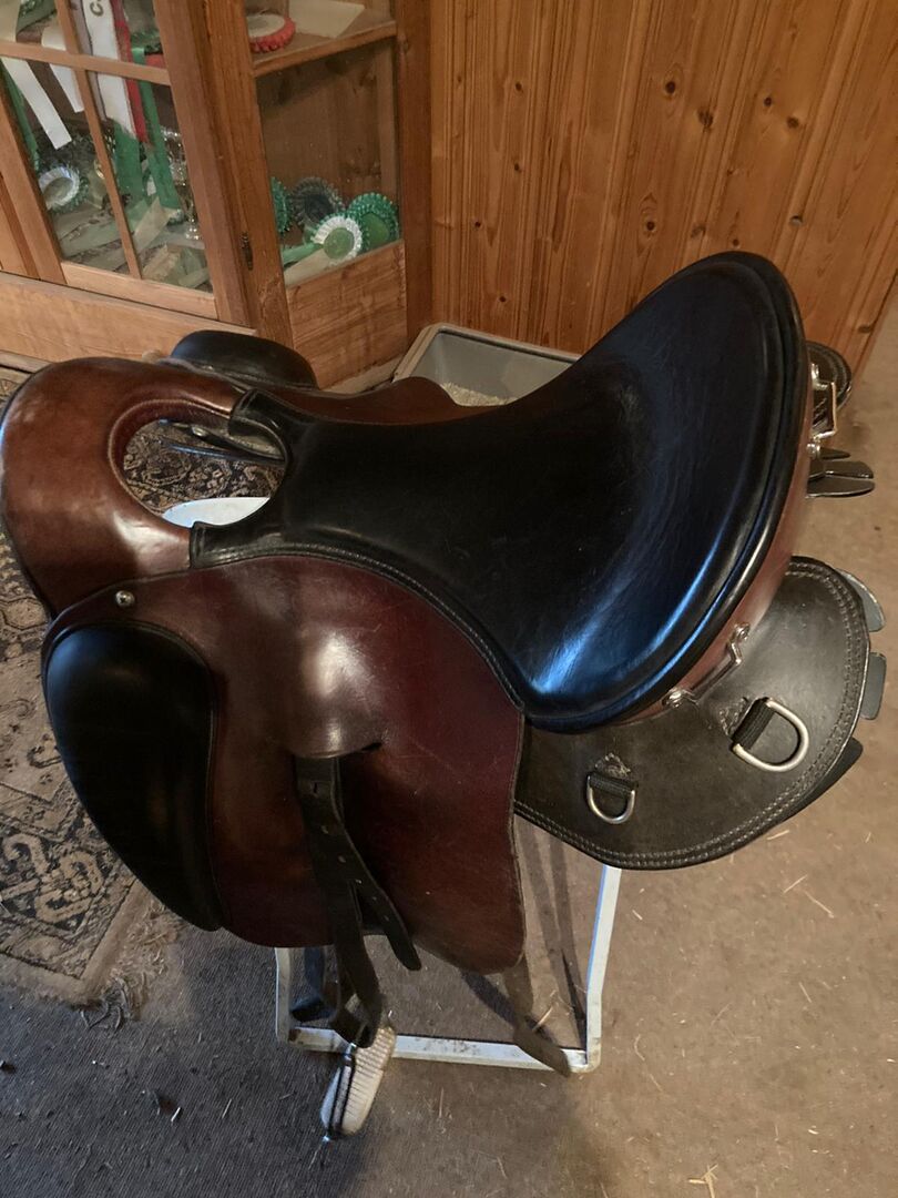 Siodło do jazdy konnej - Oferuje bardzo dobrze zachowane siodło do jazdy po szlakach/dystansach 16" cali. W komplecie znajduje się dopasowana podkładka, strzemiona z paskami i krótki pas (60 cm). Zawsze zadbany, z niewielkimi śladami użytkowania, nigdy nie miał upadku. Możliwa wysyłka-> kupujący płaci.