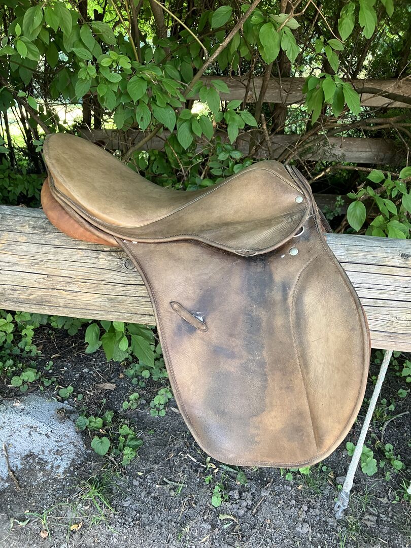 Siodło do jazdy konnej Stübben - Stare siodło Stübben VS wciąż sprawne, ale już w kilku miejscach skóra została naprawiona.