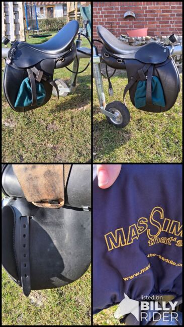 Siodło do rajdów konnych - Sprzedam moje ukochane siodło eventowe Massimo. Szerokość komory: 38 Rozmiar siedziska: 18 Z francuskimi panelami. Siodło ma również pierścienie do mocowania torby na siodło. Odbiór tylko w 27321 Thedinghausen.