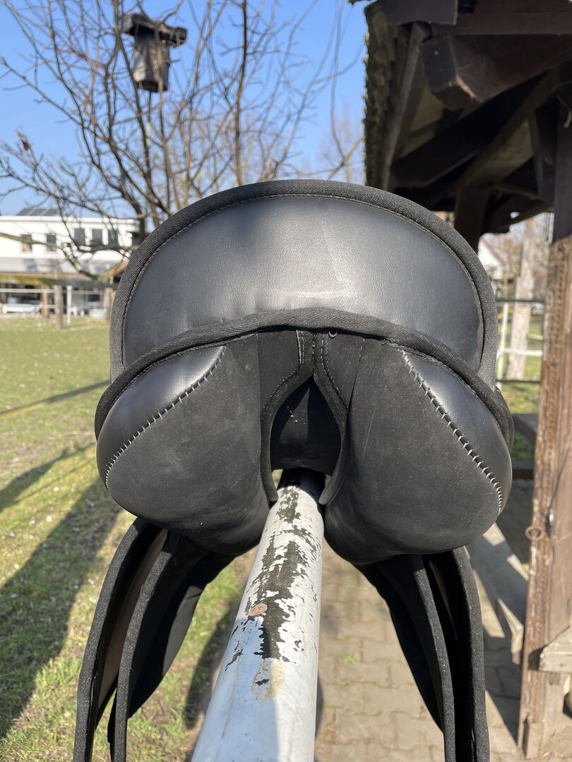Siodło dziecięce nieużywane z popręgiem i strzemionami - Zupełnie nowe siodło dziecięce z łękiem Siedzisko jest pokryte zamszową skórą. Siodło jest zupełnie nowe i nieużywane. Popręg i strzemiona są wliczone w cenę, strzemiona nie.