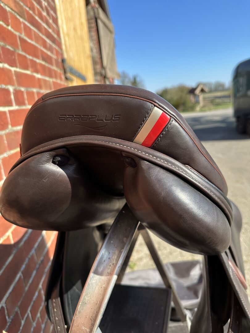 Siodło Erre plus do skoków przez przeszkody - Sprzedam moje siodło skokowe z 2022 roku Bez większych zadrapań, zawsze zadbane. W zestawie paski do strzemion.