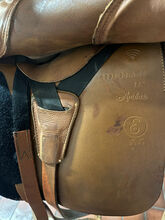 Siodło Estelle Ambar - Na sprzedaż siodło Estelle ujeżdżeniowe Ambar w rozmiarze 17,5 cala. Kolor brązowy. W doskonałym stanie. Założone na wałacha zimnokrwistego rasy szwarcwaldzkiej, dlatego pasuje również na krótkiego konia. Bardzo wygodne siodło.