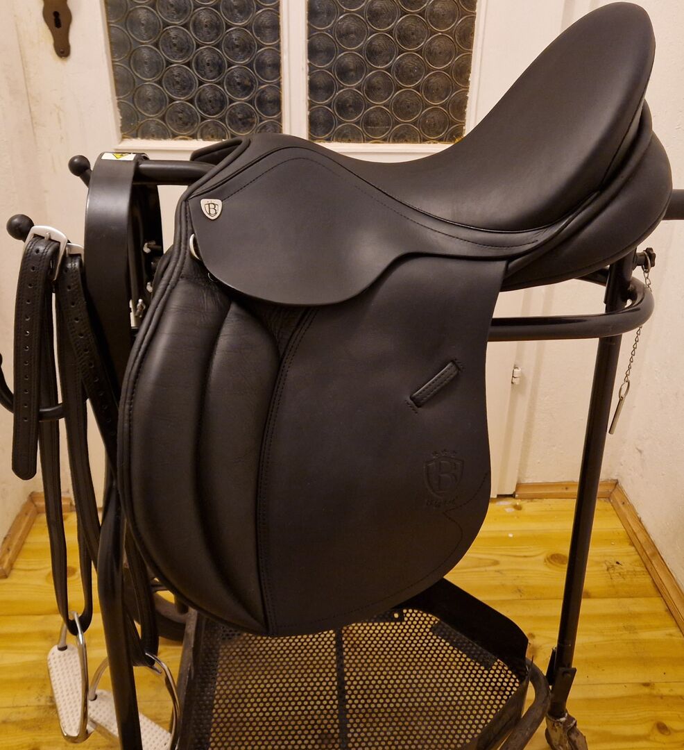 Sprzedaję to 17,5-calowe siodło VS w idealnym stanie... Było używane sporadycznie przez 6 miesięcy, potem mój koń zachorował i nie można już na nim jeździć. Siodło było na klaczy rasy Haflinger z krótkim szerokim grzbietem i niewielkim lub żadnym kłębiem.