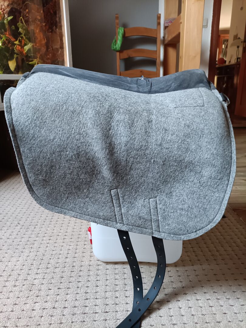 Siodło filcowe Isabel Steiner Filzsattel.de - dla płaskiego kłębu - Sprzedaję moje filcowe siodło Saffe z Filzsattel.de w wersji na płaski kłąb, ponieważ potrzebuję siodła z wysokim kłębiem. Wyściółka nie została jeszcze dopasowana. Wyściółka wykonana ze zszytych warstw filcu - twardszego niż pianka. Oznacza to jeszcze lepsze rozłożenie nacisku, większą swobodę dla kręgosłupa i lepszą równowagę dla jeźdźca.