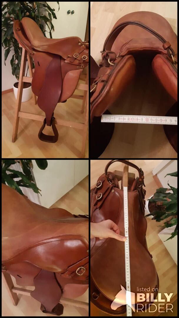 Do sprzedania francuskie siodło rajdowe, trailowe, trekkingowe firmy Gaston Mercier. Wygodna i trwała. Odpowiednie dla węższych koni i arabów, wymiary - patrz zdjęcia. W dobrym stanie, z niewielkimi śladami użytkowania (patrz zdjęcia). Rozmiar siedziska powinien wynosić 17,5 cala.