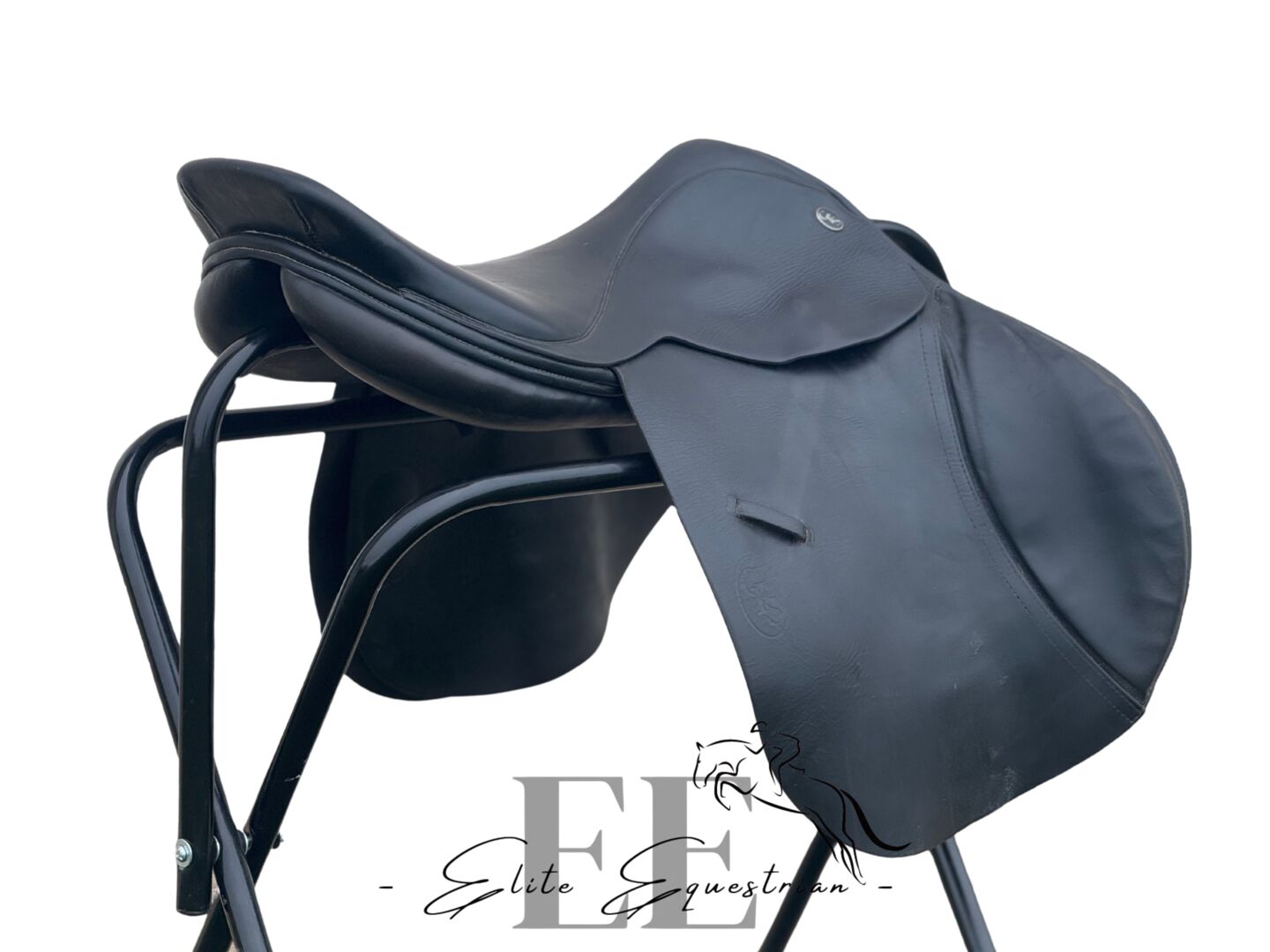 Siodło GFS Eventing 17,5"/34-35 - Na sprzedaż jest dobrze utrzymane siodło GFS o tradycyjnym angielskim kroju. Siodło jest w idealnym stanie i jest w bardzo ładnym stanie, jak widać na zdjęciach. Zostało wykonane z bardzo wytrzymałej skóry, tapicerka jest w dobrym stanie, nie jest utwardzona, a wszystkie szwy i szlufki są nieuszkodzone. Rolki udowe są regulowane, rolki łydkowe są stałe. Dzięki czterem szlufkom po każdej stronie, siodło oferuje różne możliwości zapięcia i regulacji. Średnio głębokie siedzisko sprawia, że siodło jest odpowiednie zarówno dla jeźdźców rekreacyjnych, jak i poszukujących wszechstronnego siodła zapewniającego komfort.