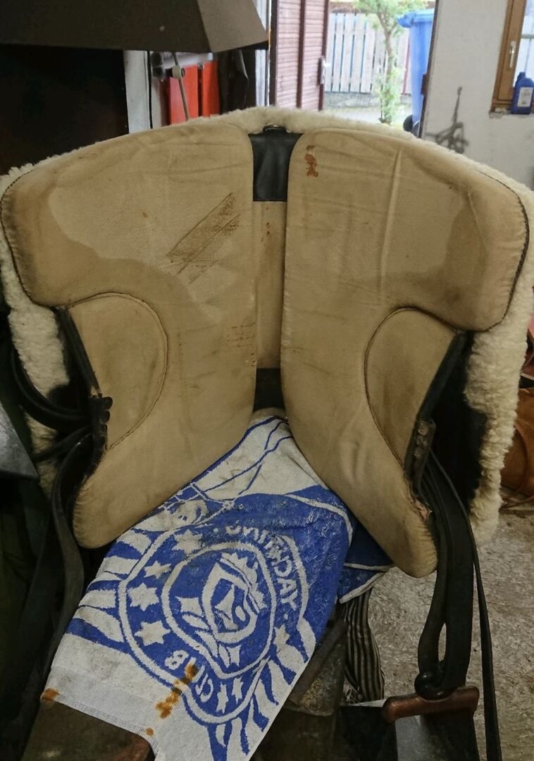 Siodło ma małe rozdarcie na jednym szwie. Zobacz zdjęcie. Jednak jest to na dole pasa i nie wykazuje żadnych ograniczeń. Miałem je na Norikerze