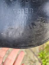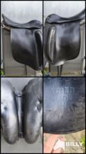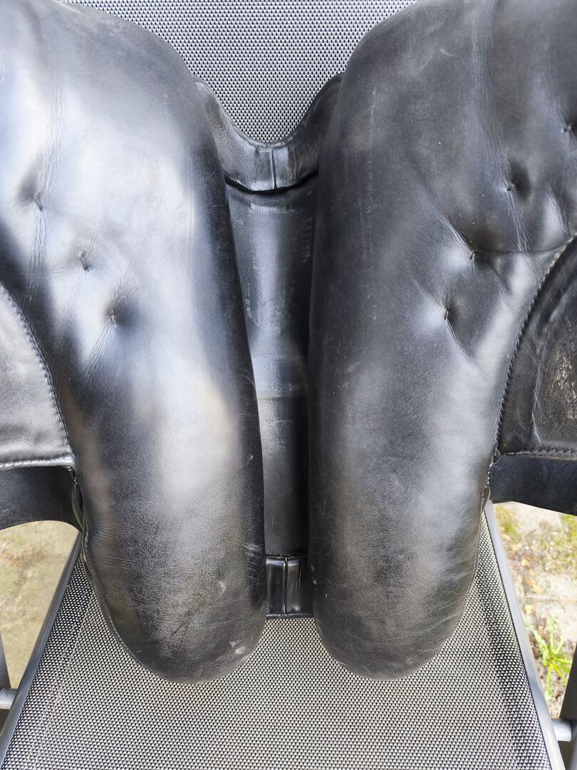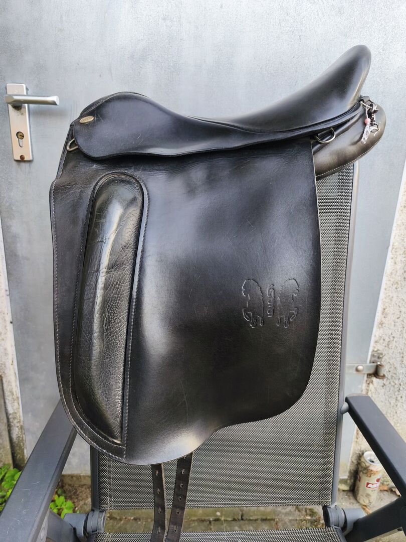 Siodło islandzkie HGG 17,5 cala - Sprzedam używane siodło islandzkie marki HGG w rozmiarze 17,5 cala. Siodło jest wykonane z czarnej skóry i ma klasyczny, prosty wygląd. Było używane regularnie, ale jest w dobrym, funkcjonalnym stanie z normalnymi oznakami zużycia (patrz zdjęcia).