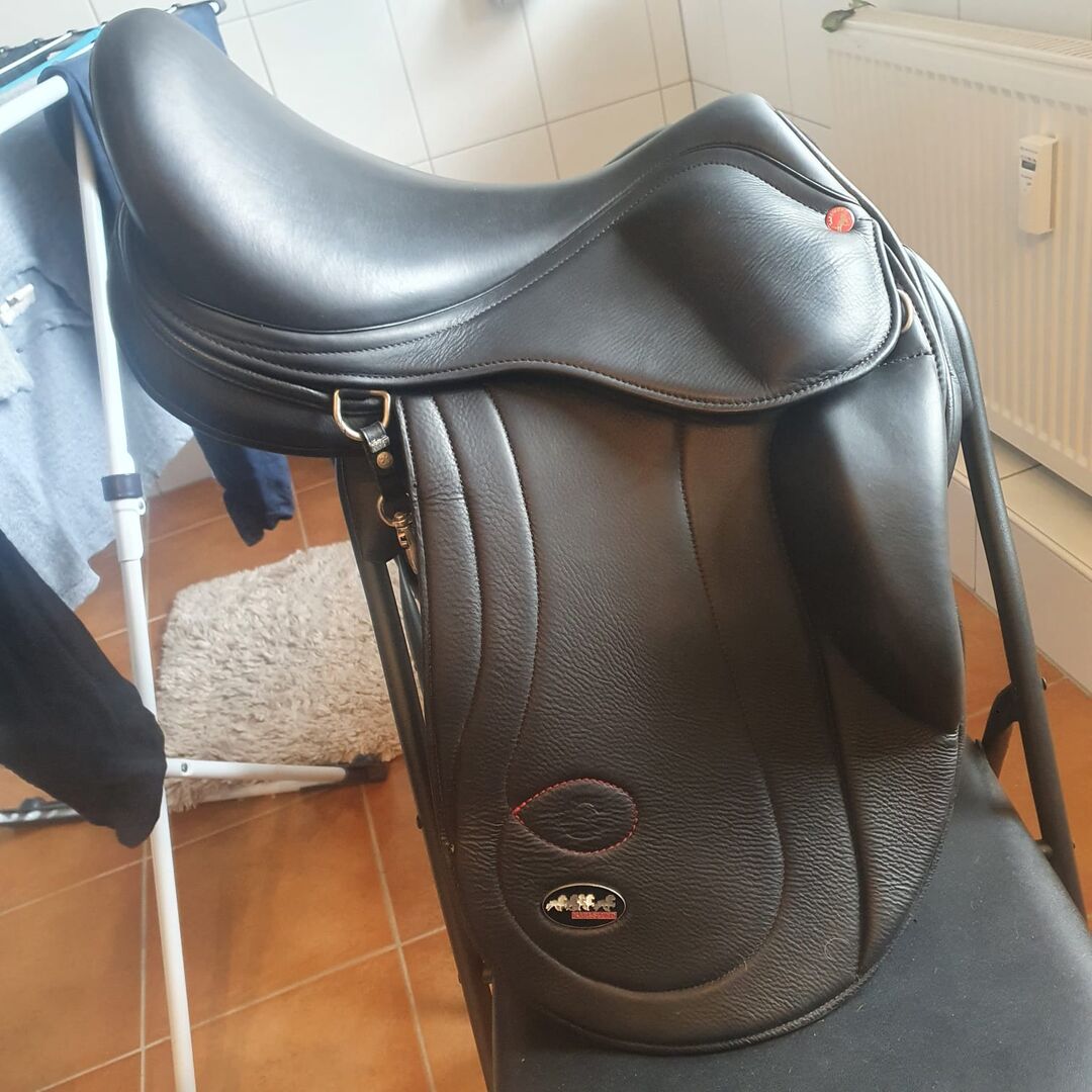Siodło Karlslund C ma kilka miesięcy i jest jak nowe - Sprzedam prawie nowe siodło Karlslund C z panelami z wełny z 2 wypustkami.