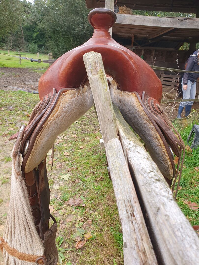Siodło Montana Semi Quarter Western Arabian, 15,5 cala. - Siodło Montana Semi Quarter Western Arabian, 15,5 cala. Nowa cena 1590 euro (https://pferdeladen-online.de/.../Montana-138-Arabian.html). Odchodzi z powodu sprzedaży konia, w bardzo dobrym stanie, spód nadal całkowicie czysty. Z grawerowanymi strzemionami. Błotniki są niezwykle krótkie na tym zdjęciu, ale są przeciętne i mogą być dość długie. Przy 1,80 nie byłam nigdzie blisko końca.