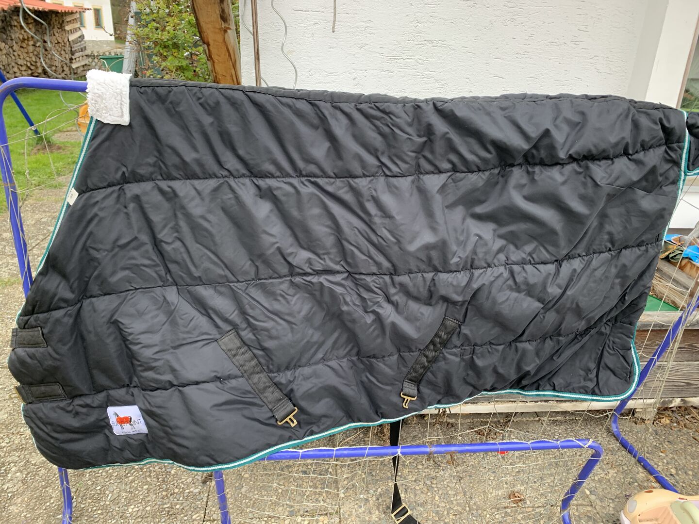 Siodło myśliwskie/skokowe Santa Cruz z zatrzaskiem i kocami stajennymi - Oferuję świetne siodło do skoków lub huntera. Jest miękko wyściełane, odległość między puśliskami wynosi 31 cm, a w kłębie 13 cm. Derki są w rozmiarze 135cm. Beżowy ma 50g, czarny około 150g. Cena za siodło 650 € VB, derki 15 € VB każda.