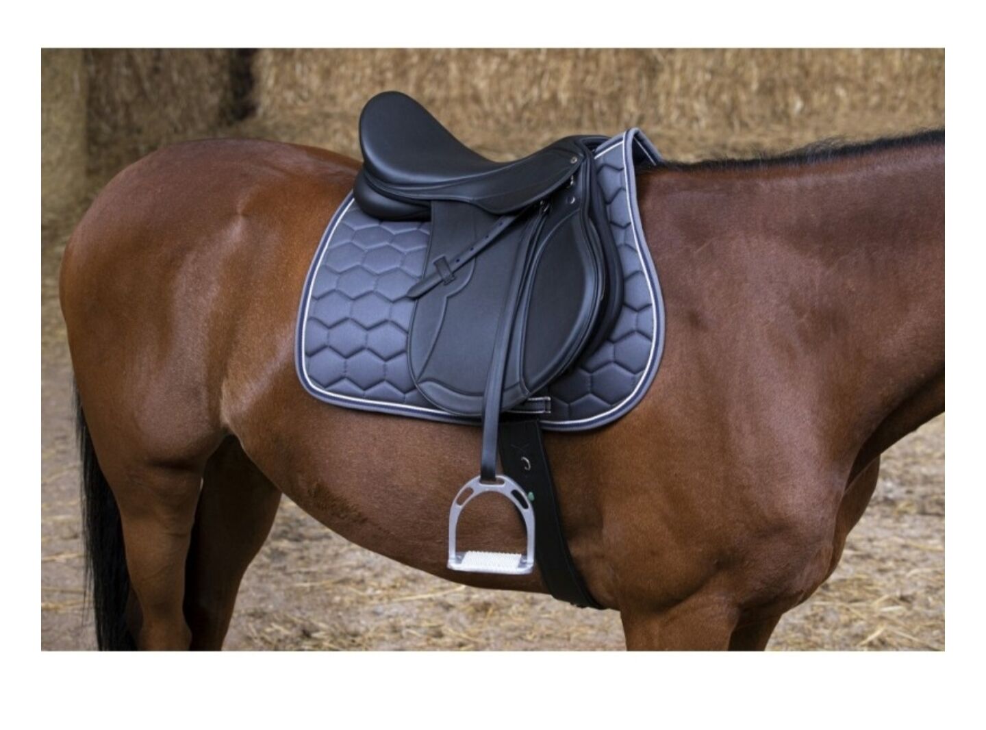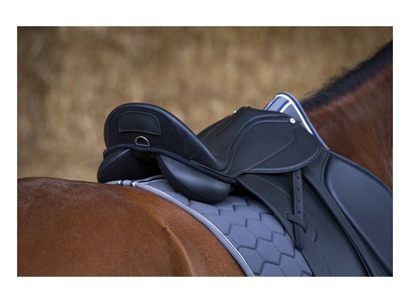 Z panelami na rzepy bez strzemion, materiału na siodło i paska na brzuch.