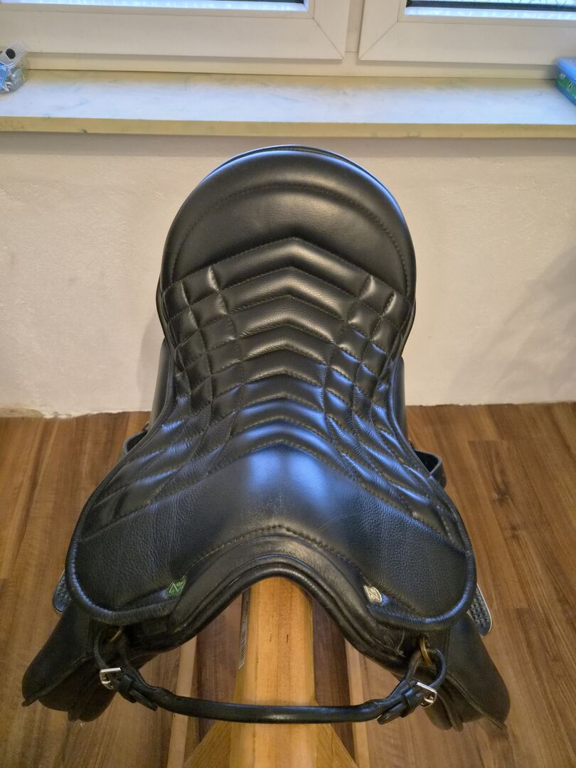 Siodło zostało świeżo wyściełane i dlatego może być używane od razu. Oferuje głębokie, wygodne siedzisko i jest szczególnie odpowiednie dla szerszych koni (np. Haflinger, silne ciepłokrwiste itp.).