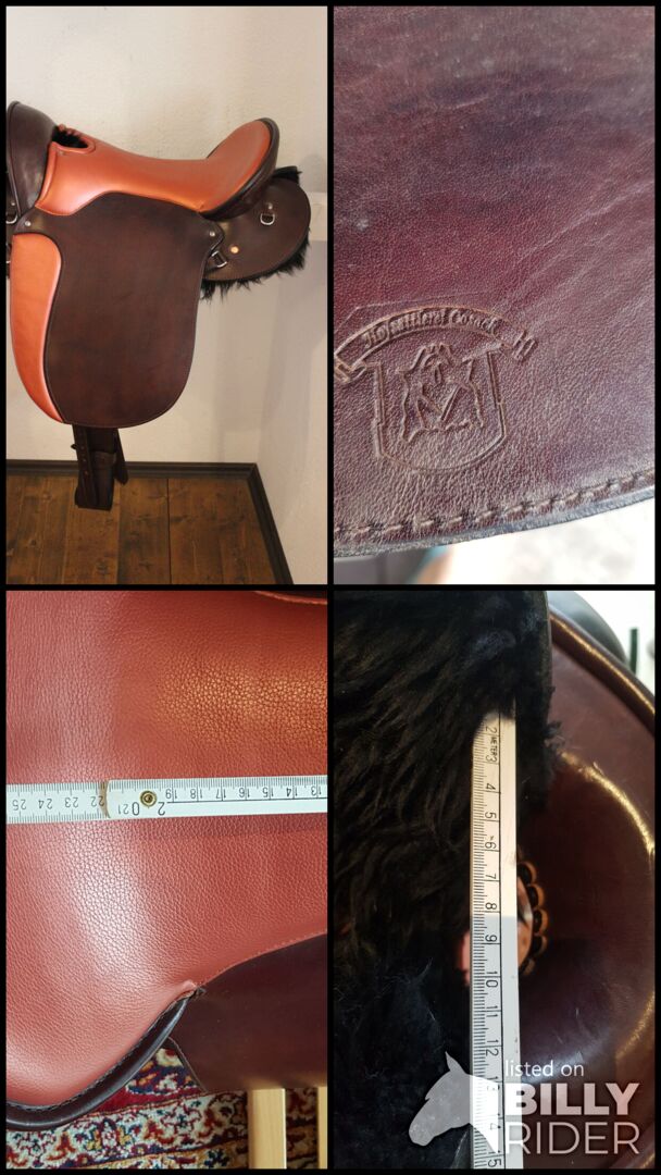 Siodło podróżne z zakładu rymarskiego Cosack - Siodło podróżne czekoladowo-brązowe/miedziane z czarną skórą siodła przedni i tylny łęk System spódnicy z czarną owczą skórą Siedzisko Lady comfort, zapobiega otarciom Angielski łęk typu Y