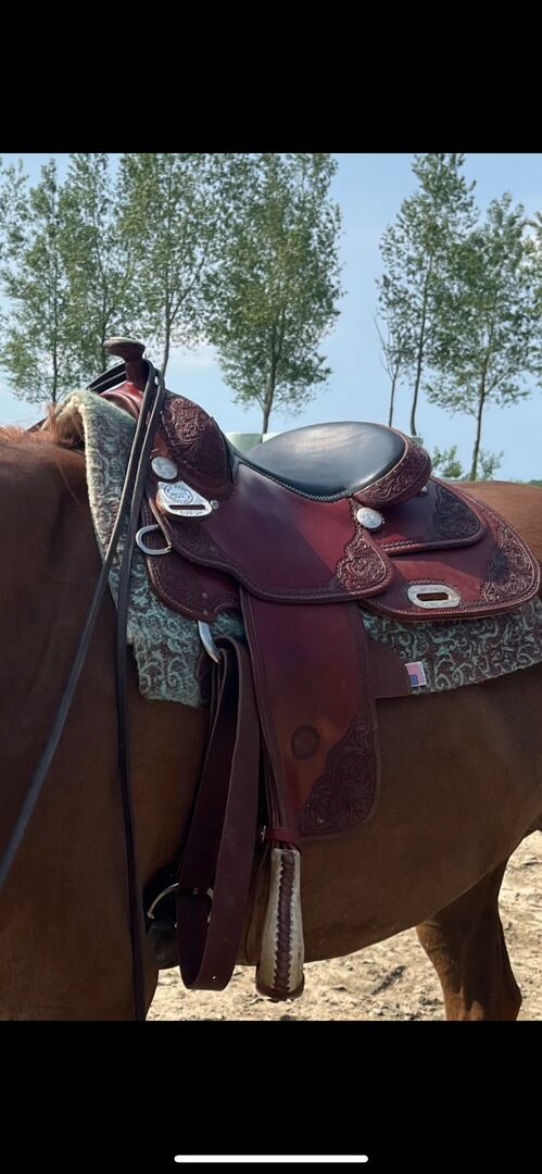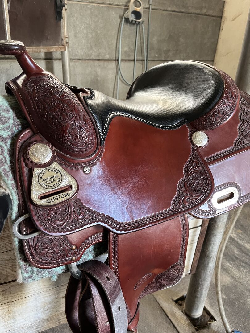 Siodło reiningowe Billy Cook - W bardzo dobrym stanie siodło reiningowe Billy cook. Pełna ćwiartka kolby (16 cali). Niewiele używane, ma żelowe siedzisko. Licytacja możliwa od 1509?-.