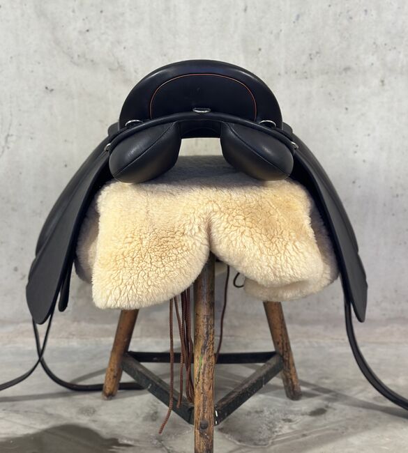 Producent: Jeremy Rudge Saddlery England Model: G5 z pony tree Tak dobry jak nowy demonstrator (2024), ujeżdżony 2x Kolor/skóra: brązowy buffalo (skóra bawola), koniakowa lamówka Wyściółka: wełna owcza Akcesoria: Dodatkowe D-ringi, ochraniacze na rzepy, strzemiona, pokrowiec ochronny Cena: €2,200 z VAT (nowa cena €3,900)