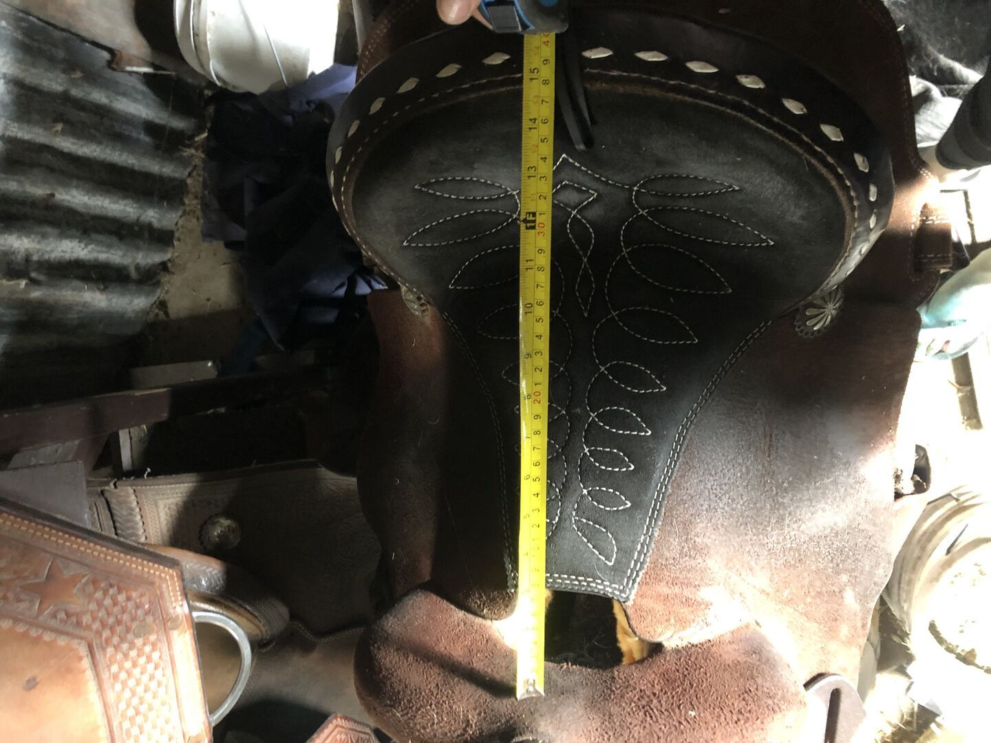Near new Rocking W barrel saddle, minimal wear. 14” seat, 7” gullet, semi bars