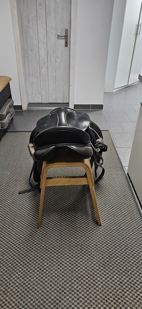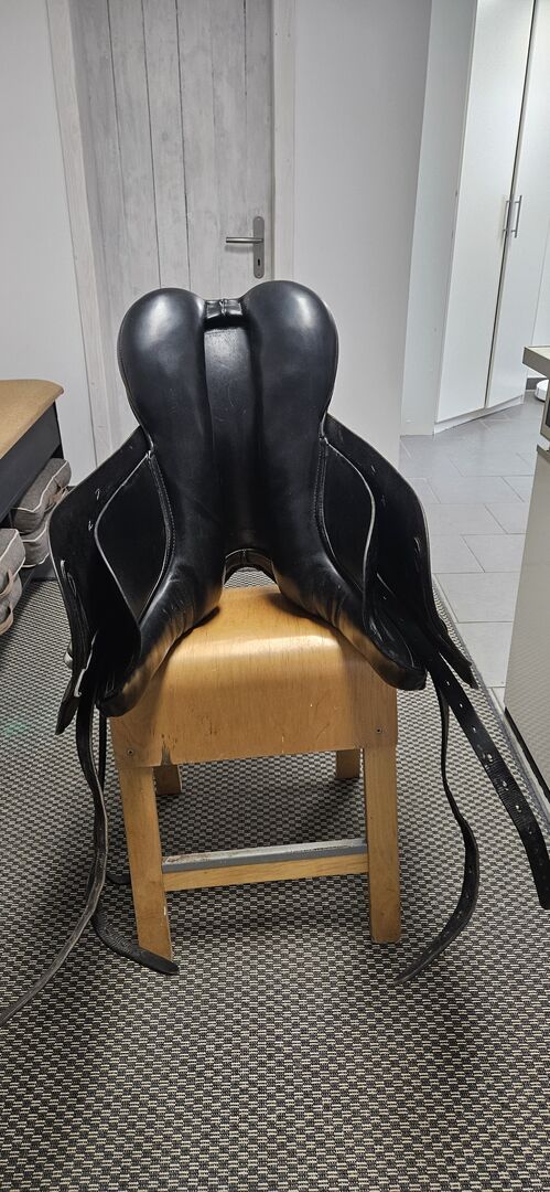 Siodło / Siodło ujeżdżeniowe / Siodło jeździeckie - Dobre, używane siodło Voss, Kamp-Lintfort ze strzemionami i paskami. Siedzisko 17,5 cm Możliwość wysyłki za dodatkową opłatą.