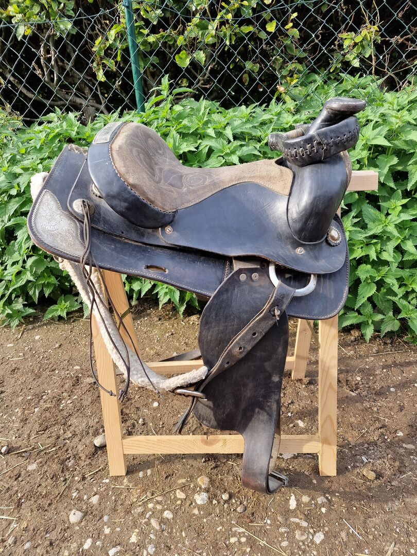 Siodło, siodło western, siodło skórzane - Sprzedaż różnych koni i sprzętu jeździeckiego w imieniu małej szkoły jazdy na kucykach. Dochód zostanie przeznaczony na małą szkołę jazdy na kucykach.