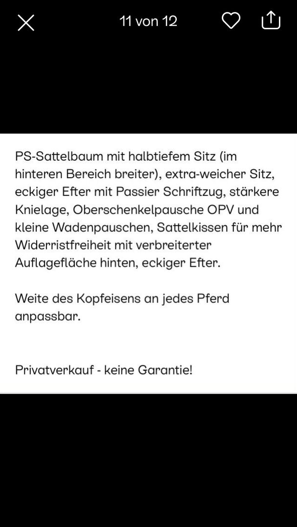 Hi Ina Tigges, I am interested in your ad 'Sattel Springen / Passier Arktur'. Please contact me! 😊