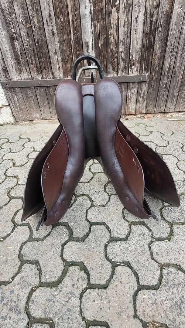 Siodło skokowe - Na sprzedaż piękne i zadbane siodło skokowe Horse & Passion (submarka Kieffer) w kolorze brązowym. Rolki na rzepy dla idealnej regulacji pozycji uda. Dostępne są tylne rolki kolanowe. Wszystkie dalsze informacje można znaleźć na zdjęciach.